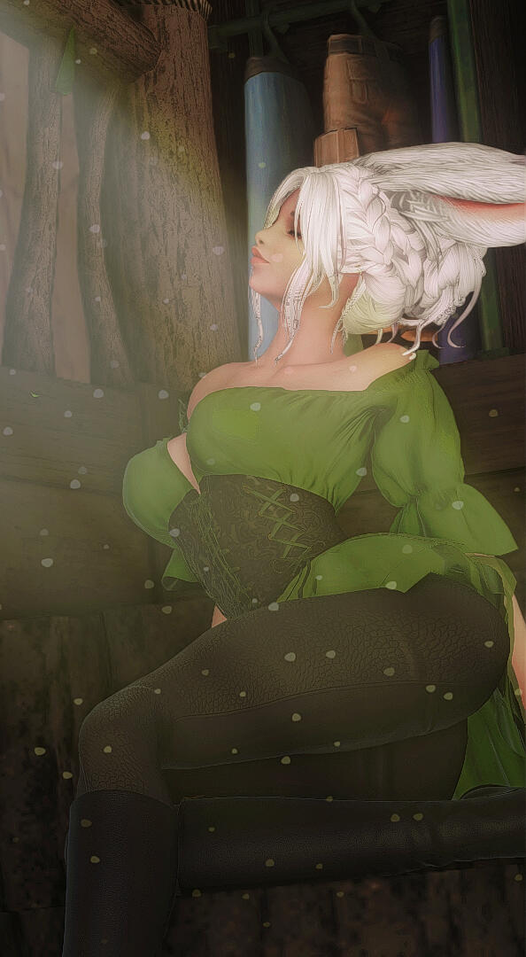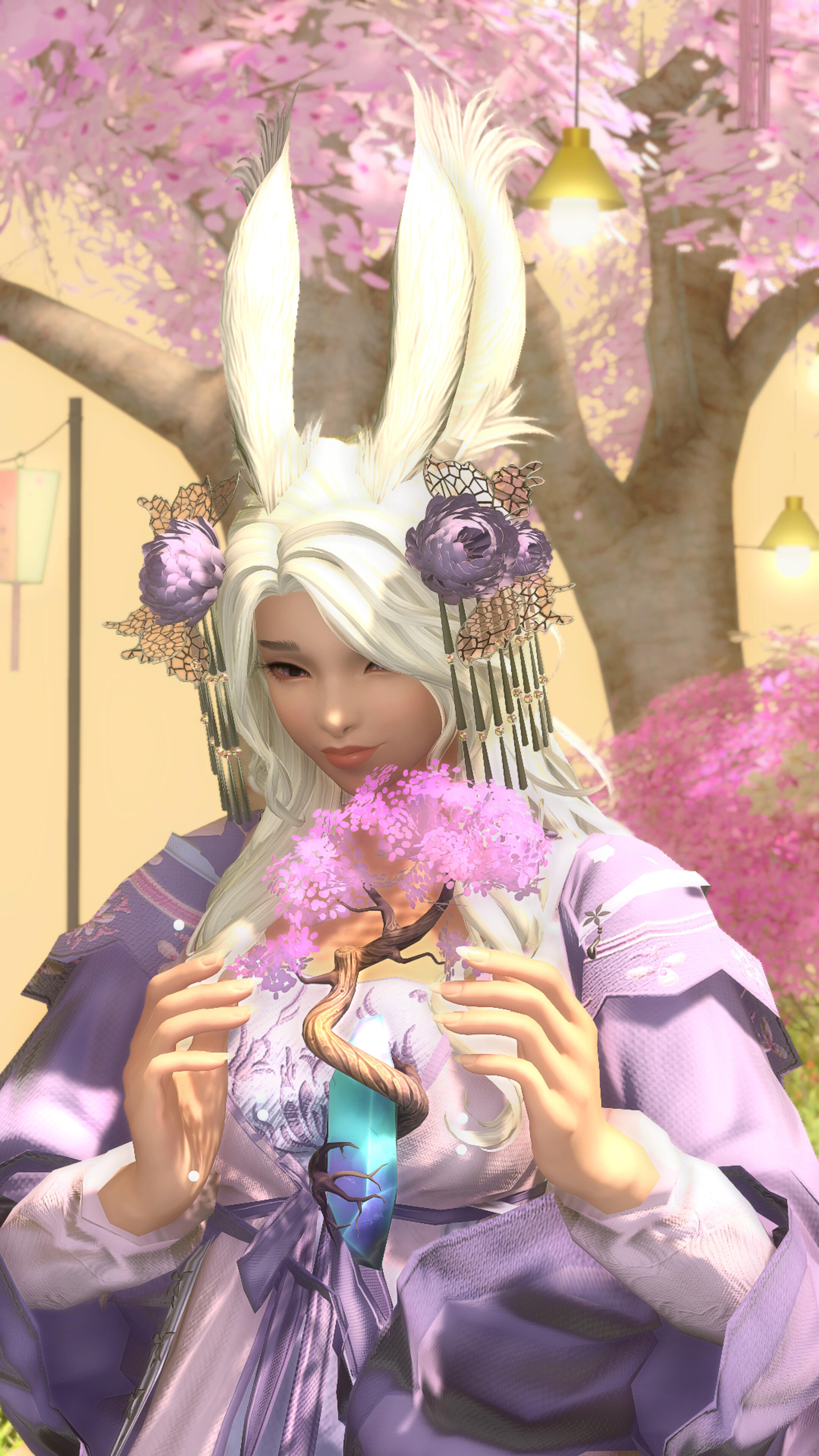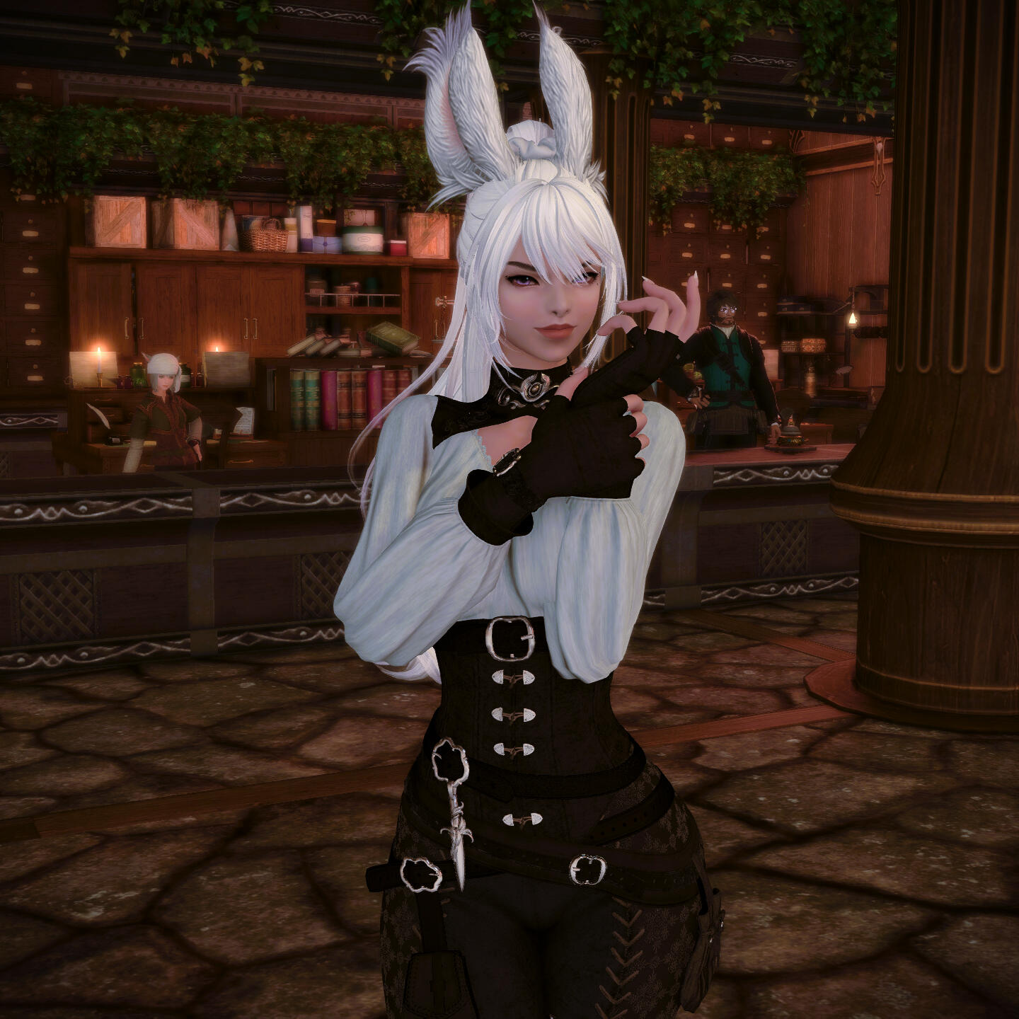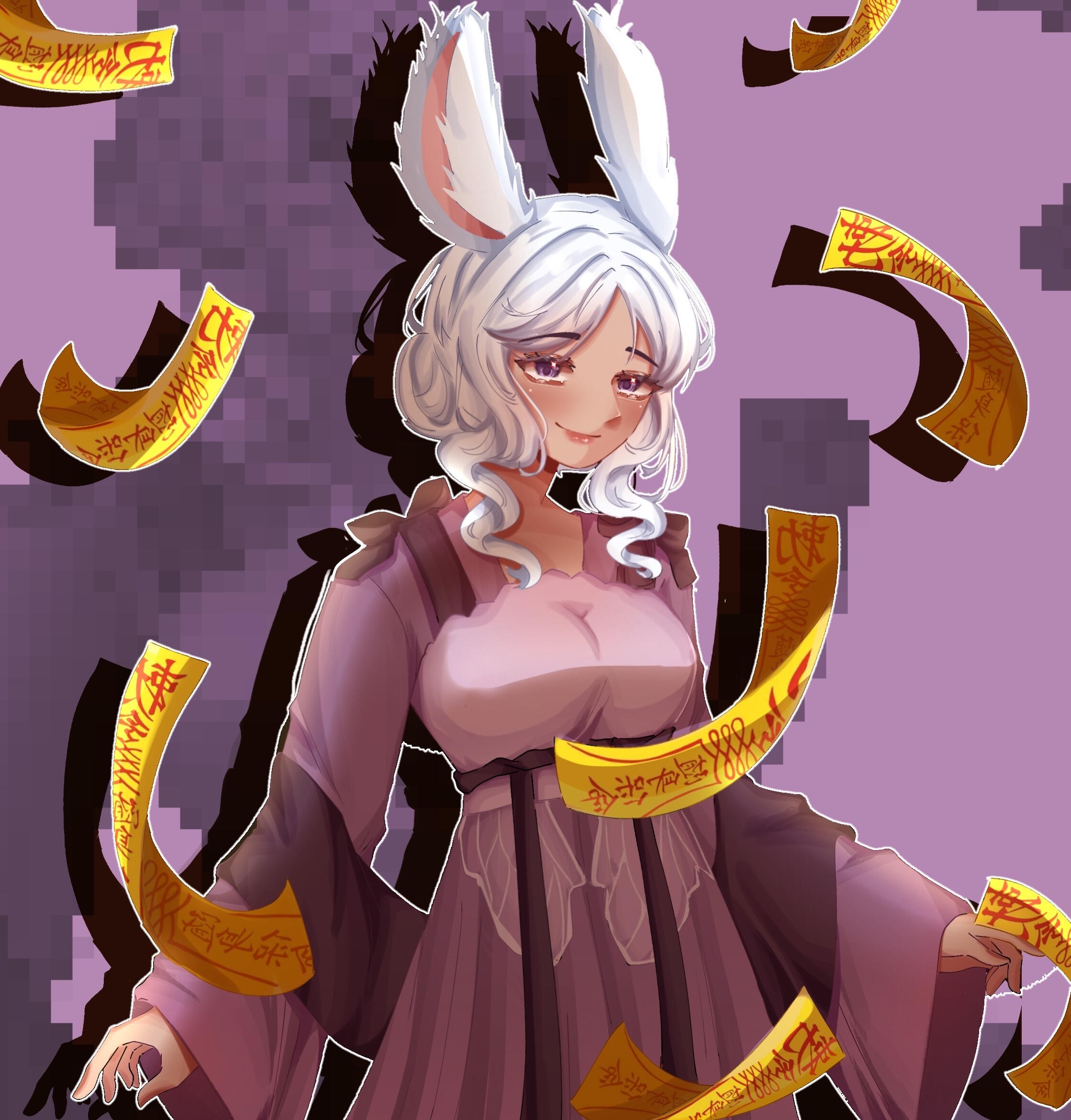 Born to a Dalmascan Viera refugee mother and a Doman Hyur father, Hana and her twin sister grew up within a secluded shrine. Their father served as its caretaker, and their mother became its priestess. While their community was kind, Hana’s unusual connection to the spiritual realm unsettled many. Whispers of omens surrounded the twins, and when the first wave of Doman refugees fled the Garlean occupation, Hana was sent with them. Both as the shrinekeeper’s daughter and as an unexpected guide.Her abilities, once feared, became invaluable as she led those that fled to safety. In her new life, she found solace in her craft, her tailoring and artistry so intricate and soulful that some claimed it was imbued with a life of its own. Now, she remains hidden away in Mor Dhona, surrounded by paint, fabric, and the ghosts of a past she can’t quite escape, with all too many still seeking to speak to those they had left behind.