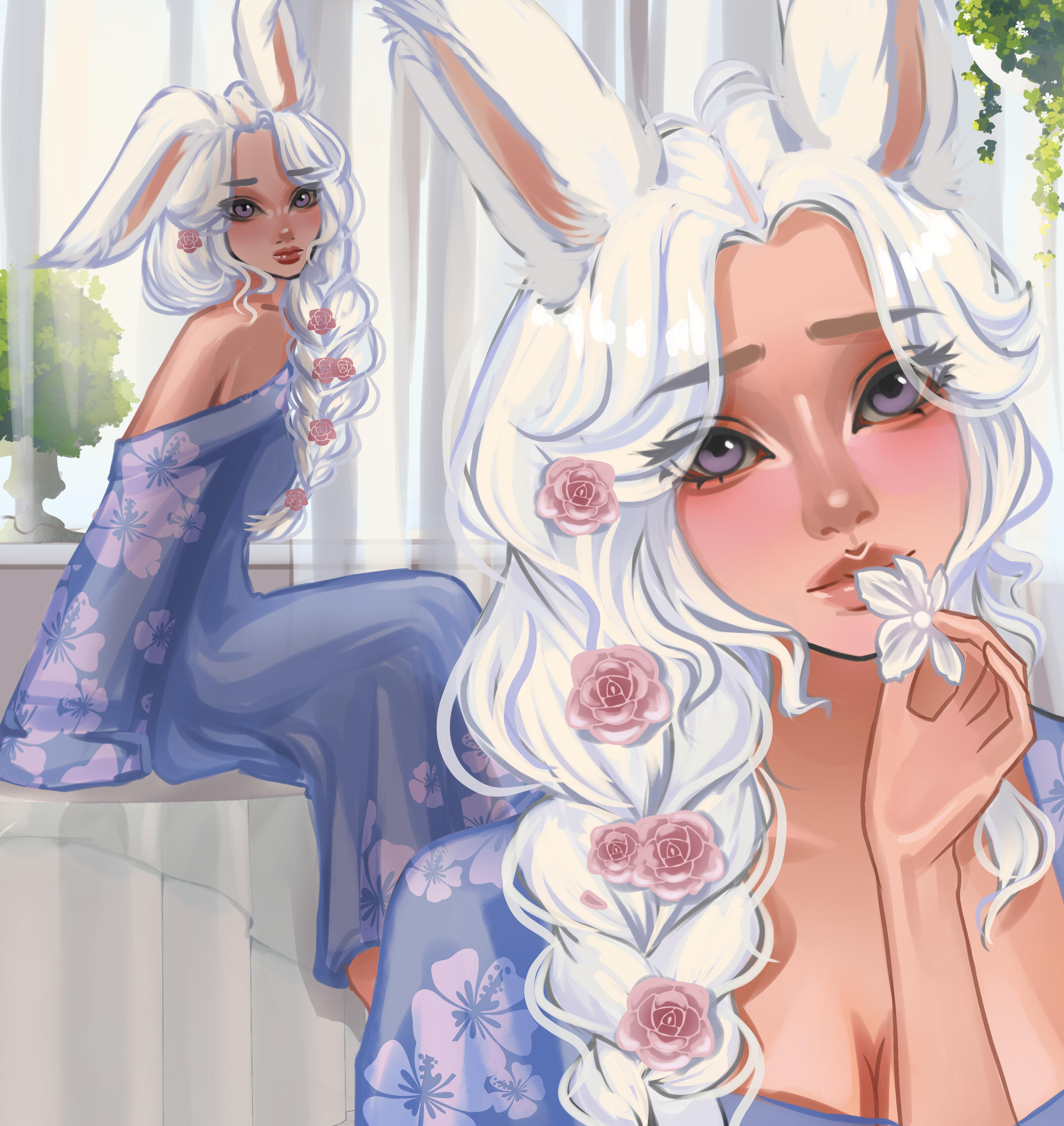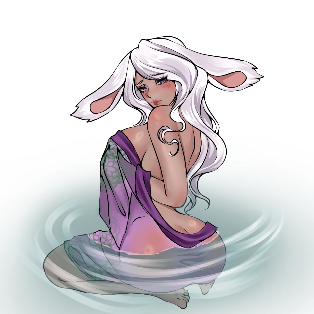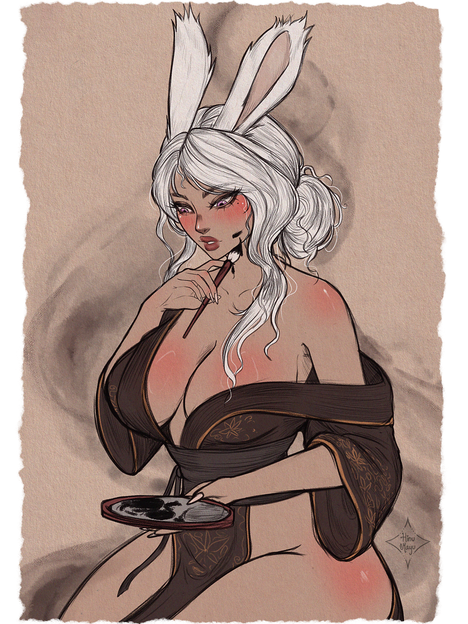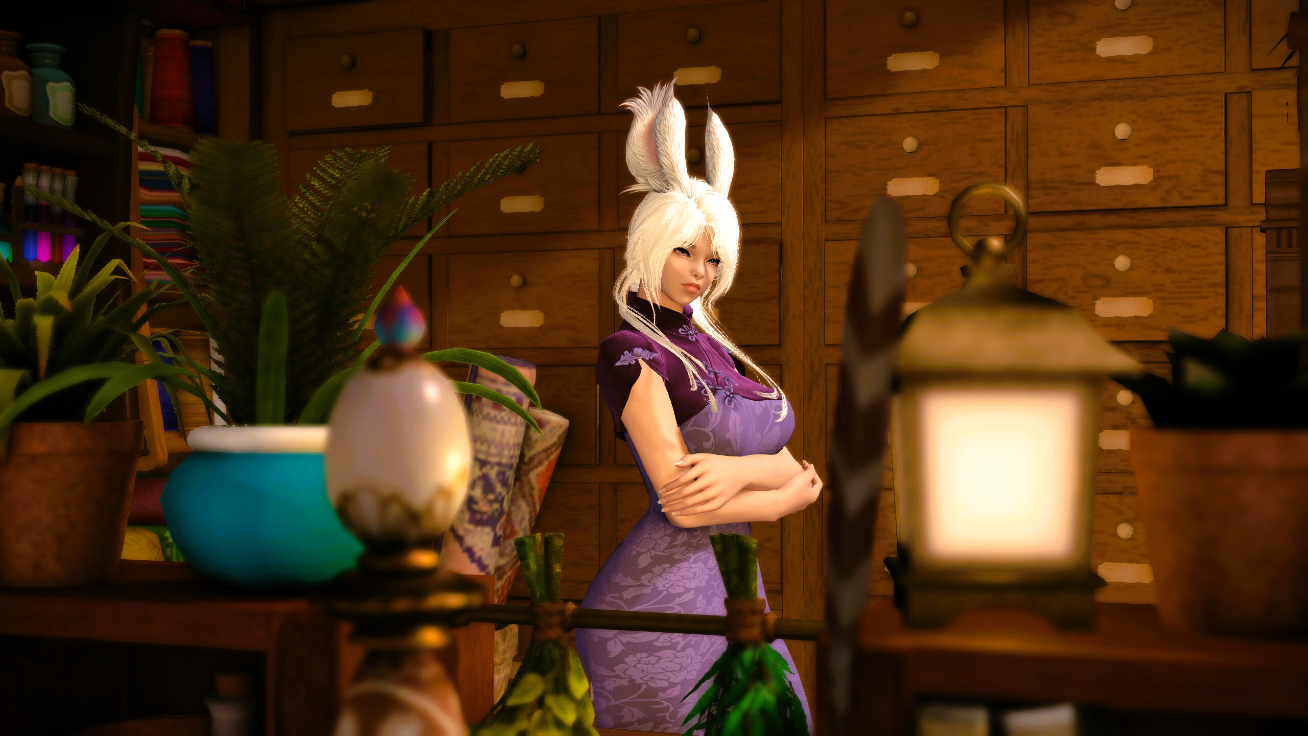 Born to a Dalmascan Viera refugee mother and a Doman Hyur father, Hana and her twin sister grew up within a secluded shrine. Their father served as its caretaker, and their mother became its priestess. While their community was kind, Hana’s unusual connection to the spiritual realm unsettled many. Whispers of omens surrounded the twins, and when the first wave of Doman refugees fled the Garlean occupation, Hana was sent with them. Both as the shrinekeeper’s daughter and as an unexpected guide.Her abilities, once feared, became invaluable as she led those that fled to safety. In her new life, she found solace in her craft, her tailoring and artistry so intricate and soulful that some claimed it was imbued with a life of its own. Now, she remains hidden away in Mor Dhona, surrounded by paint, fabric, and the ghosts of a past she can’t quite escape, with all too many still seeking to speak to those they had left behind.
