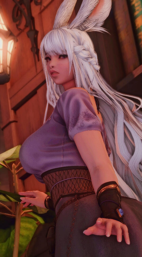 Eastern Bun? While the race isn't common in the east, that she came with and was a part of the Doman refugees. That she has the same slant to her eyes, and that everything about her screams she's of the east... she is still a Viera. Strange rumors brew on her appearance as well as the spooky and awkwardness of the character. This is even before the more wild ones with the voices...