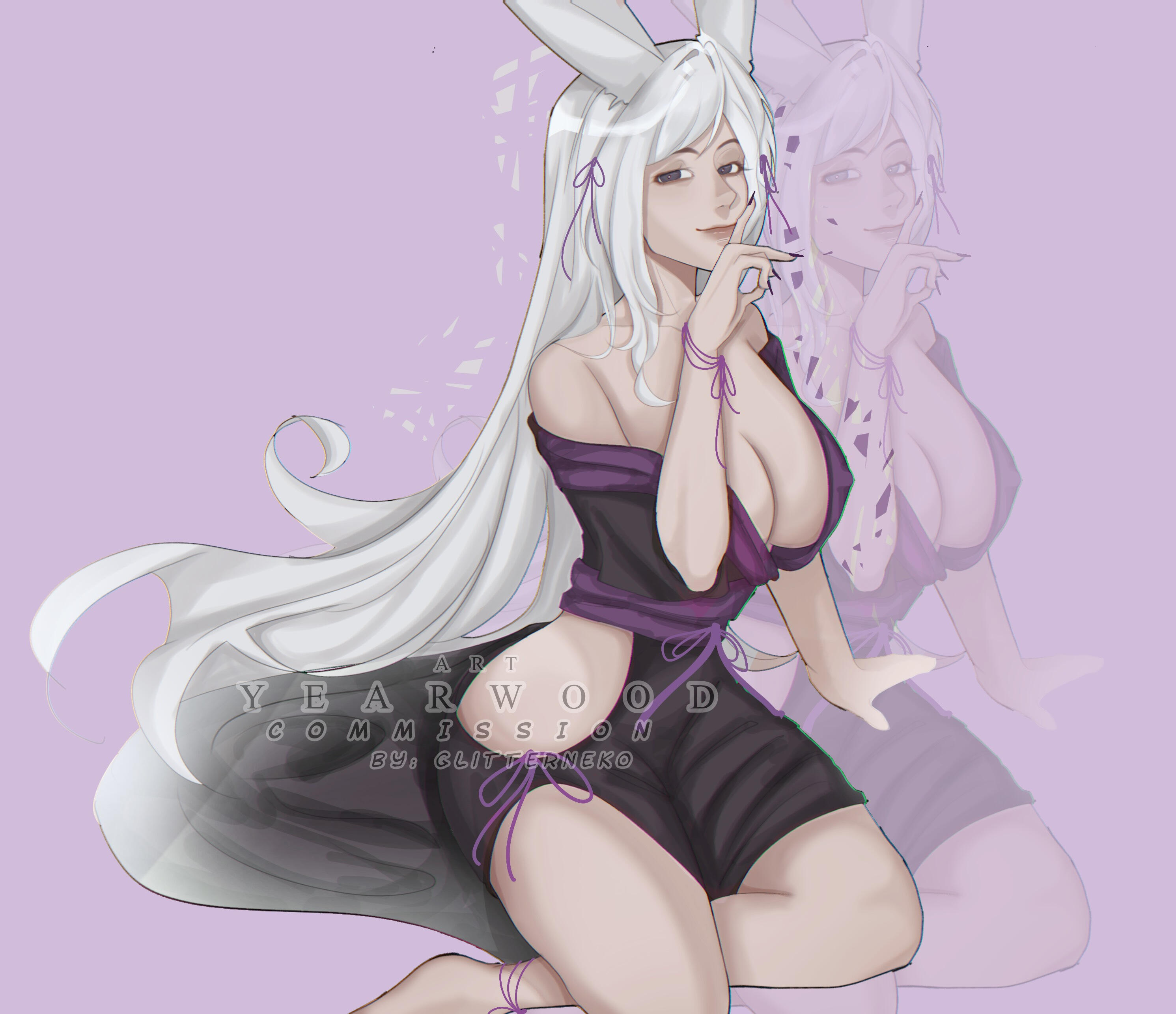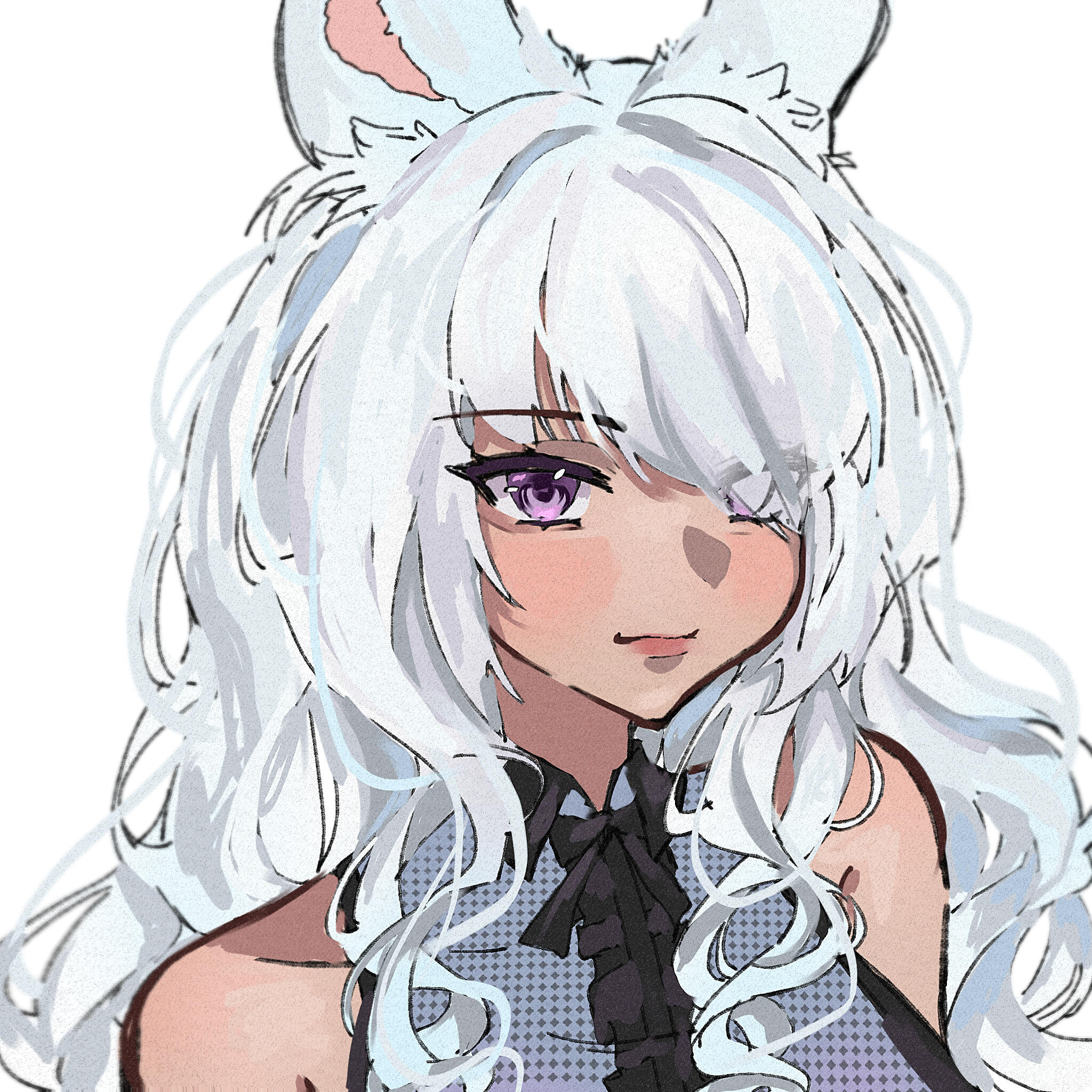 Hair color: White with light violet hues streaked and along the tips of her ears..